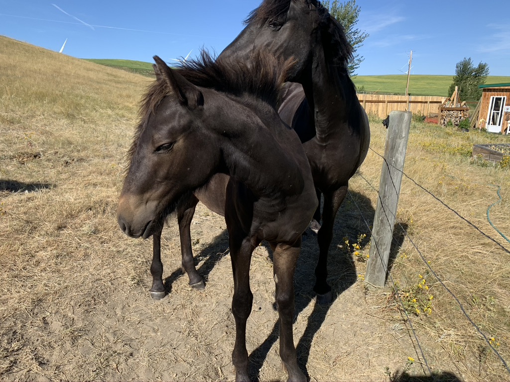 I know that to preserve this Le Cheval Canadien breed and the herd’s “pedigree”, I must plan breedings and select the best sire and dam as well as educate the youngsters, pick the right human partners, and make time to enjoy riding myself. I do so as sustainably as I can, but it has been a slow process because I also worked 9 – 5 with another job for 30 years in addition to managing the farm and herd. I am grateful to only have one key focus now. I know you all want to live at Windy Coulee forever, but it is healthy for the youngsters to find new adventures and human partners who have the time to focus on your life, and to go out into the world. Even a “wild” horse herd sends their youngsters away and well, wild herds are significantly meaner to the young stallions. Windy Coulee only has so much room in its grasslands, creek valley, and horse sheds. I know it is best for the breed and this line, for other humans to start a sustainable breeding program.
